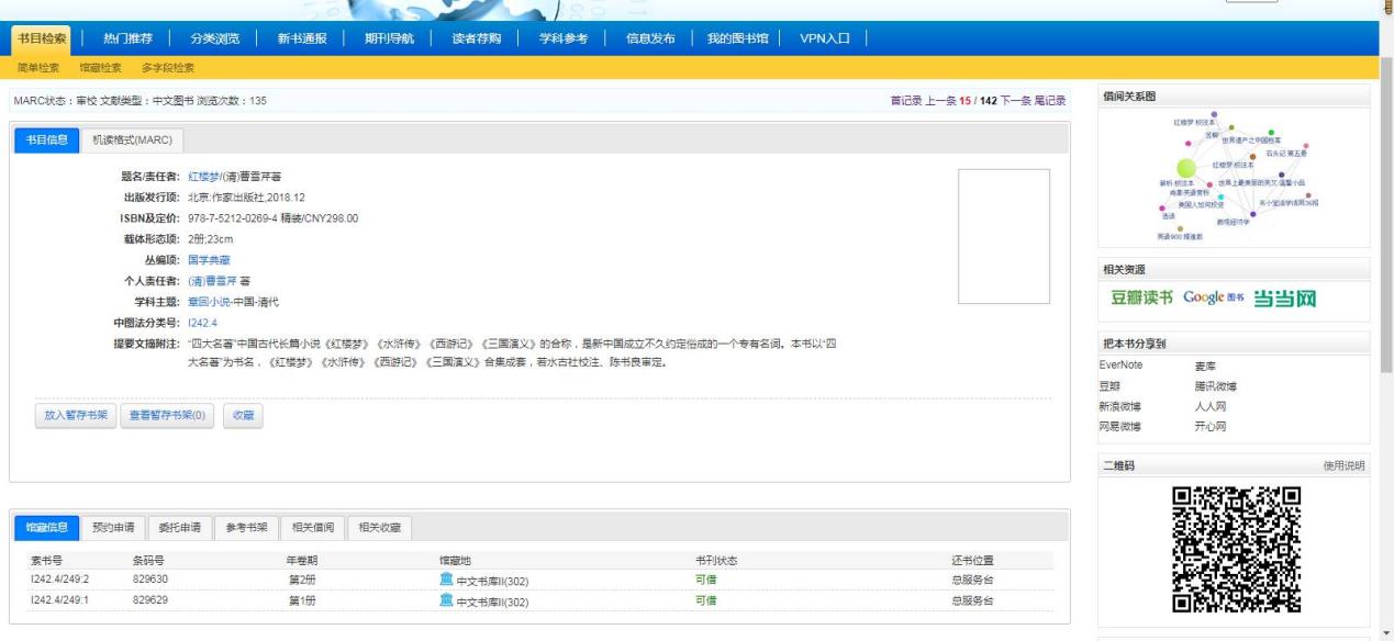 索书号又可称为排架号,表明馆藏中的某一文献的排架位置,以便提取和归架的一种编号。一般由字母、数字和其它符号组成。读者利用计算机终端、网络查检到图书的索书号,即可从书架上方便地找到所需的图书。